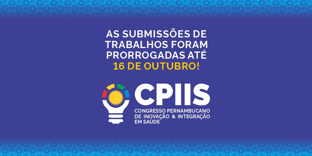 O Congresso Pernambucano de Inovação em Inteligência em Saúde (CPIIS 2025) prorrogou o prazo para submissão de trabalhos. Agora, profissionais, gestores e estudantes têm até o dia 16 de outubro para enviar suas experiências inovadoras...